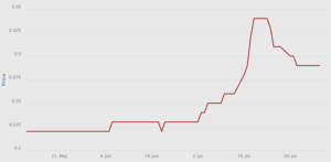 EUA’s (European Union Allowances) increased 27.5% to €16.99, CER’s (Certified Emission Reductions) increased 75% to €0.35, retreating off highs of €0.28, in the last three months to July 30th.
