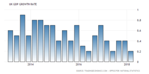 A mid cycle slowdown is fine and expected at this stage of the economic cycle, but this could be the Brexit effect: 0.2% increase in GDP is not good for Q1 2018.