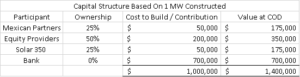 Accordingly, we discounted this avenue in April and began marketing our 5-project pipeline to Venture Capitalists, solar developers, solar conglomerates and banks, under the structure detailed below.