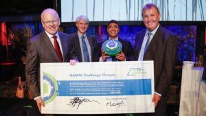 Photo: The NAM70 Challenge cheque is presented to Storelectric Ltd. Left to Right: Gerald Schotman, CEO NAM and President KIVI with Storelectric Ltd.’s Mark Howitt, CTO, and co-founder, Tallat Azad, Managing Director and Jeff Draper, CFO and co-founder.