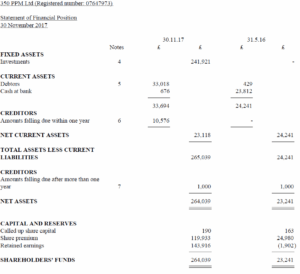 Our financial position from our accounts / aka our balance sheet is detailed below as per our Accounts Submissions to Companies House: