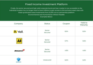 Conversely, our platform offers syndicated bonds from well-known issuers such as Barclays Bank, McLaren, AA and Tesco.
