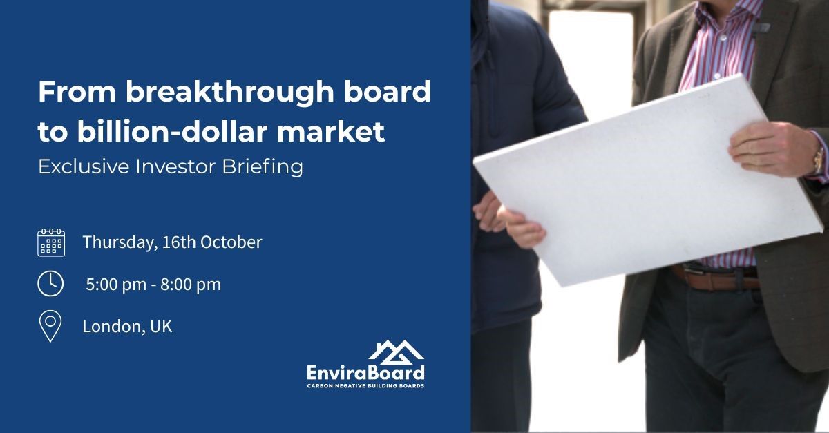 EnviraBoard has acquired the core IP, secured UK production capability, and is now in active discussions with distributors and construction partners ready to align with the regulatory shift to low-carbon materials.